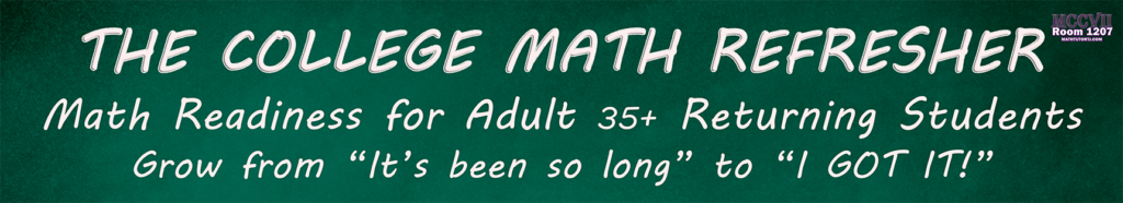 For those over 35 returning to class this fall or those wanting to reinforce their math skills, some of that ASSUMED KNOWLEDGE has dissipated. Lack of use does that to all skills and math is no exception.